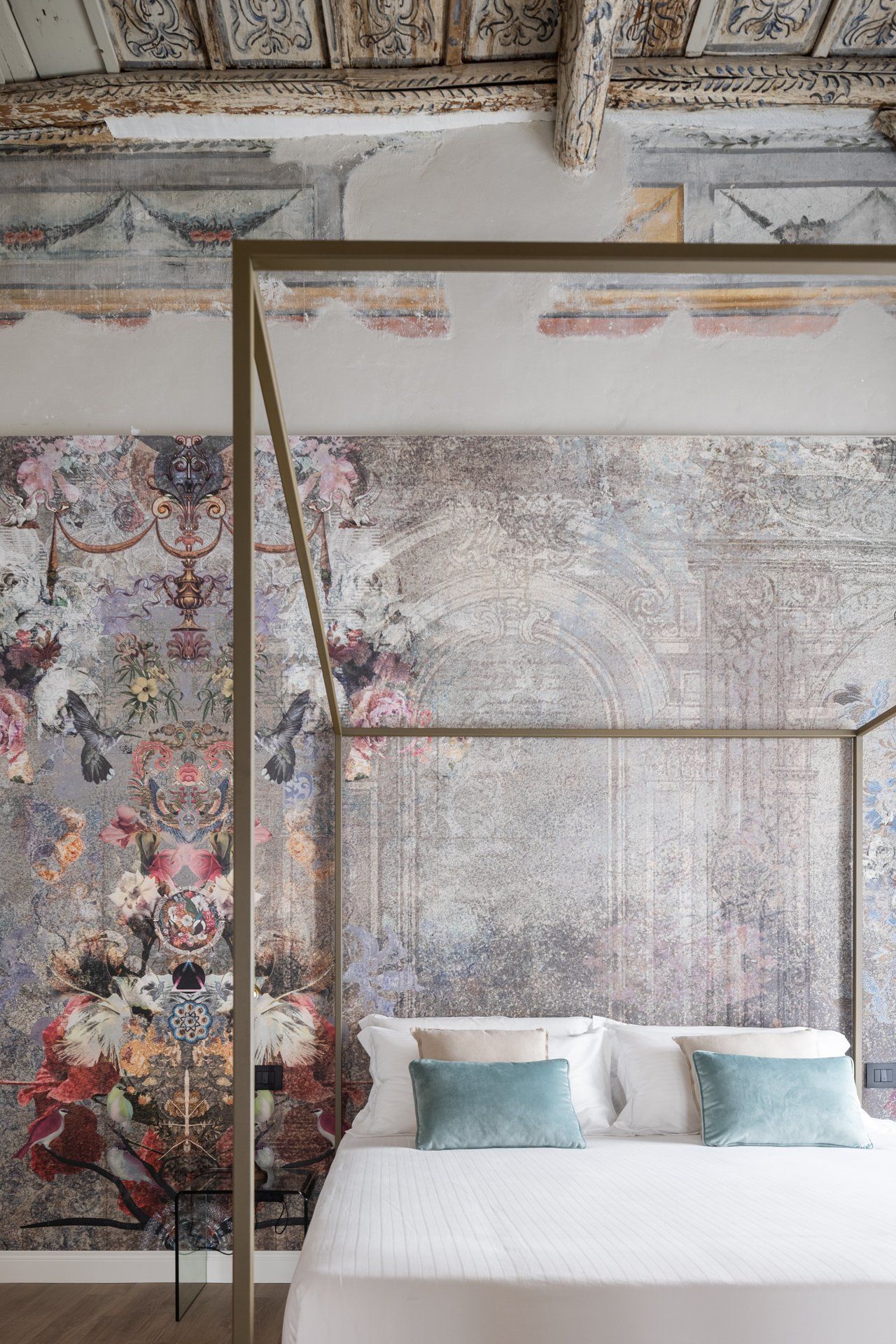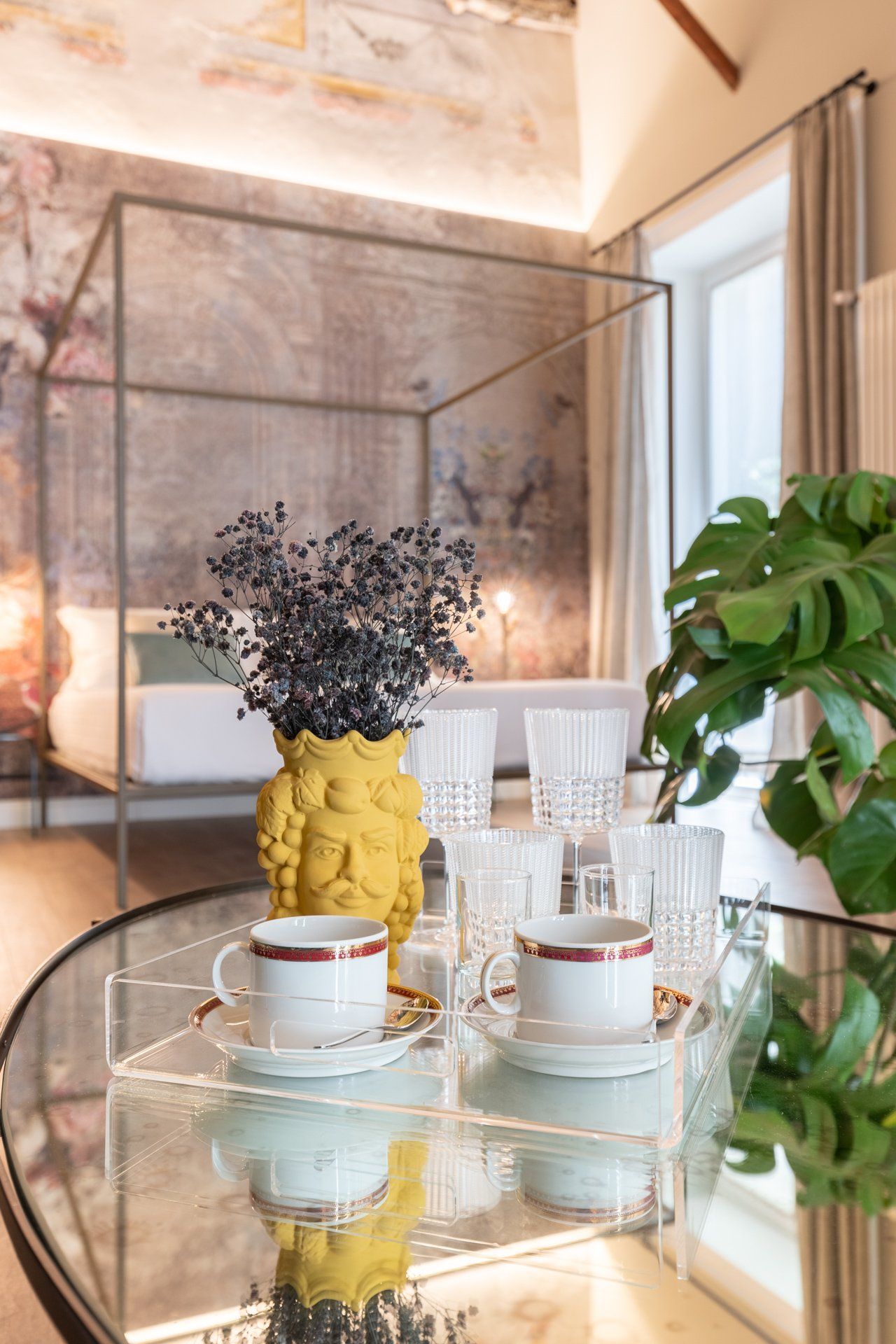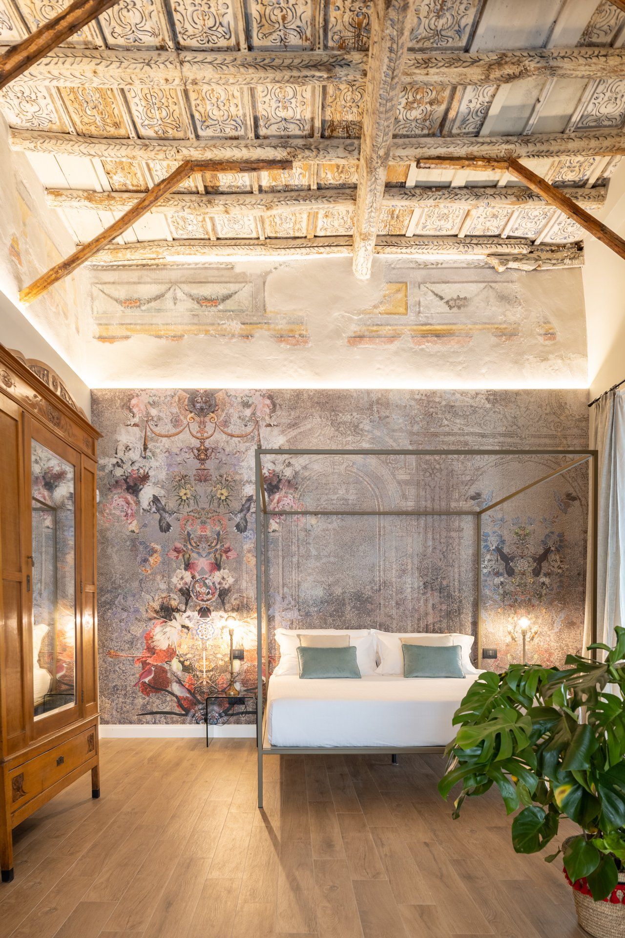 Raffinata Suite dedicata all’amata Rosalia, Santa Patrona della città di Palermo. I soffitti lignei decorati a mano risalenti al 1700, la pregiata carta da parati sognante e rarefatta e i suggestivi giochi di luci regalano a questo ambiente un forte impatto emozionale. L’armadio originale in stile Liberty e la dormeuse in velluto completano armoniosamente l’ambientazione poetica.